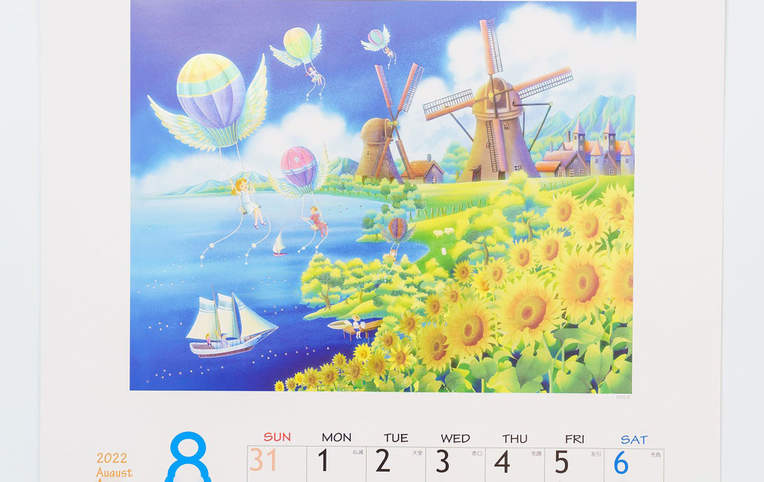 メルヘンの世界では、柔らかく温かな画風で子供や植物を描き、企業カレンダーや書籍のイラストなどを手がける